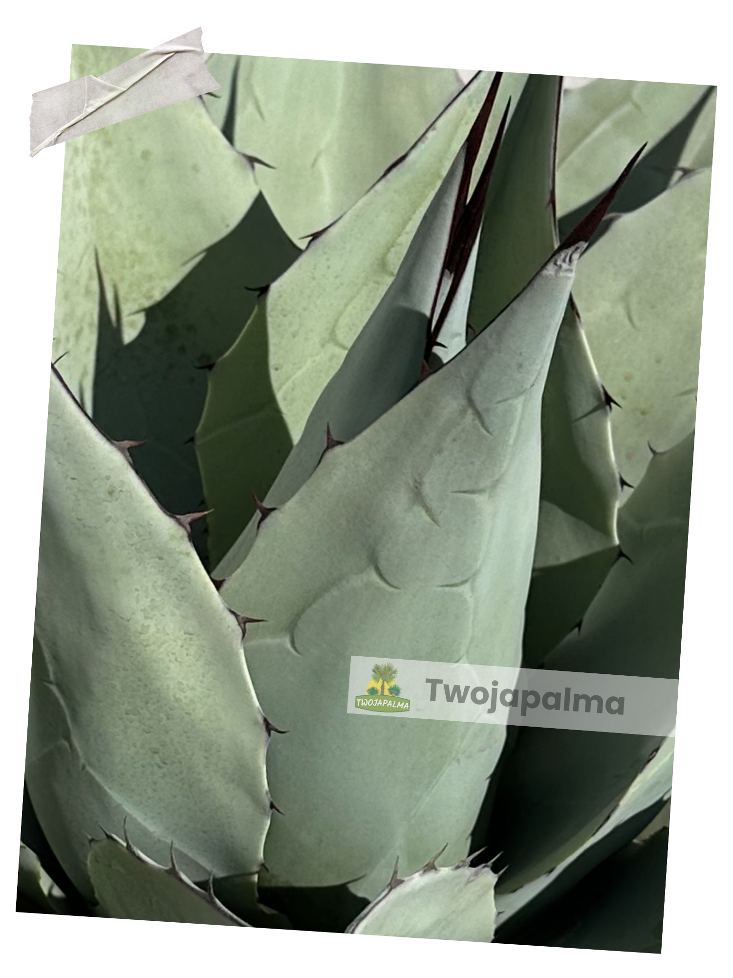 Liście są bardzo szerokie, grube i mięsiste, o charakterystycznym jasno niebiesko-zielonym kolorze, często pokrytym delikatnym nalotem. Ich krawędzie wyposażone są w drobne kolce, natomiast na końcu każdego liścia znajduje się wyraźny, mocny kolec szczytowy. Cała roślina prezentuje się niezwykle nowocześnie i geometrycznie, dzięki czemu doskonale wpisuje się w aranżacje minimalistyczne oraz ogrody o charakterze śródziemnomorskim i pustynnym.