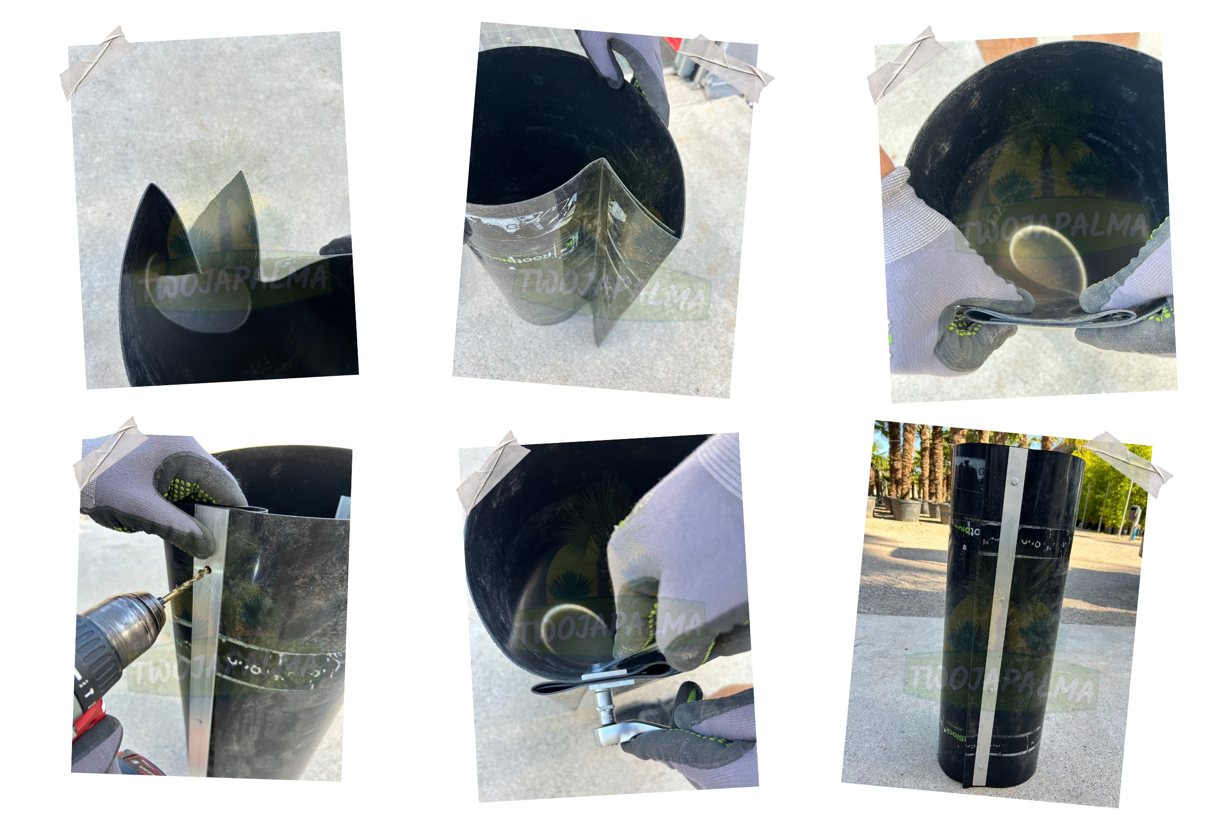 Montaż bariery korzeniowej jest prosty — kluczowe są trzy rzeczy: odpowiednia głębokość, szczelne połączenie końców oraz delikatny skos („lejek”), który dodatkowo utrudnia kłączom przejście poza wyznaczoną strefę.Ważne: bariera nie służy do oddzielania każdej sadzonki osobno. Montuje się ją tak, aby obejmowała cały wyznaczony obszar — np. cały szpaler bambusów wzdłuż ogrodzenia.
